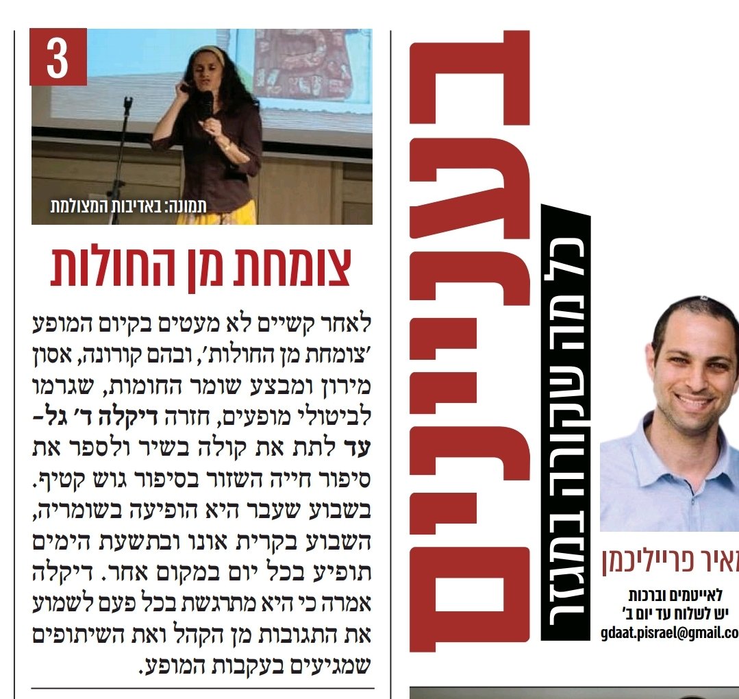 אני דיקלה גל־עד, אשת אמנויות במה רב־תחומית, יוצרת שחיה ונושמת את עולם הבמה והיצירה. לאורך השנים אני פועלת בתחומי השירה, הקריינות והתיאטרון — גם על קדמת הבמה וגם מאחורי הקלעים — מתוך אהבה עמוקה לאמנות ולחיבור האנושי שהיא יוצרת. אני שרה, מלחינה, כותבת, מביימת, משחקת ומנחה, וכל פרויקט עבורי הוא הזדמנות לספר סיפור, להעביר רגש וליצור חוויה אמיתית שנוגעת בקהל. היצירה שלי משלבת מקצועיות, דיוק אמנותי, יצירתיות בלתי נגמרת והרבה חום ואנושיות. אני מאמינה בכוחה של הבמה לחבר בין אנשים, לרגש, לעורר השראה ולהשאיר חותם. בכל הופעה, קריינות או יצירה שאני לוקחת בה חלק, אני מביאה את הלב, הניסיון והאהבה הגדולה שלי לעשייה — כדי ליצור רגעים שנשארים הרבה אחרי שהאורות כבים.